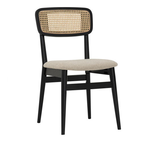 Arlo dining chair in Black colour frame, Beige colour Lake fabric cushion seat