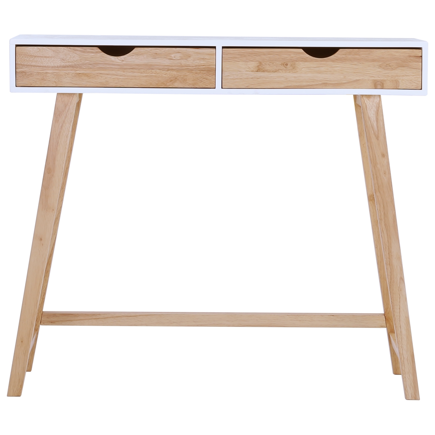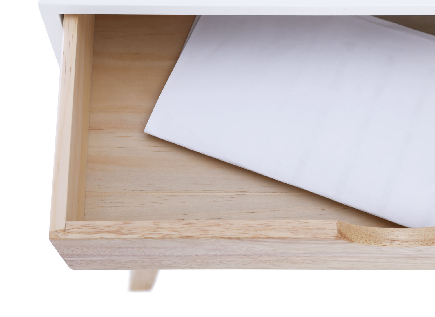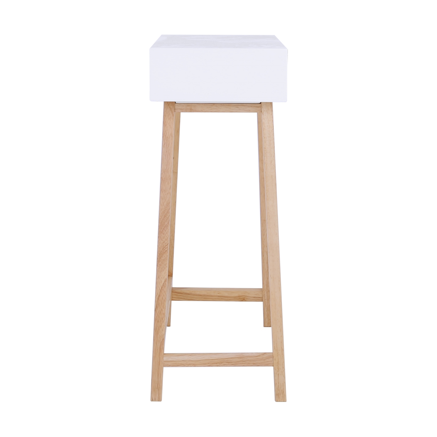 Arsenio console table in White colour top and Natural colour drawer, Natural leg