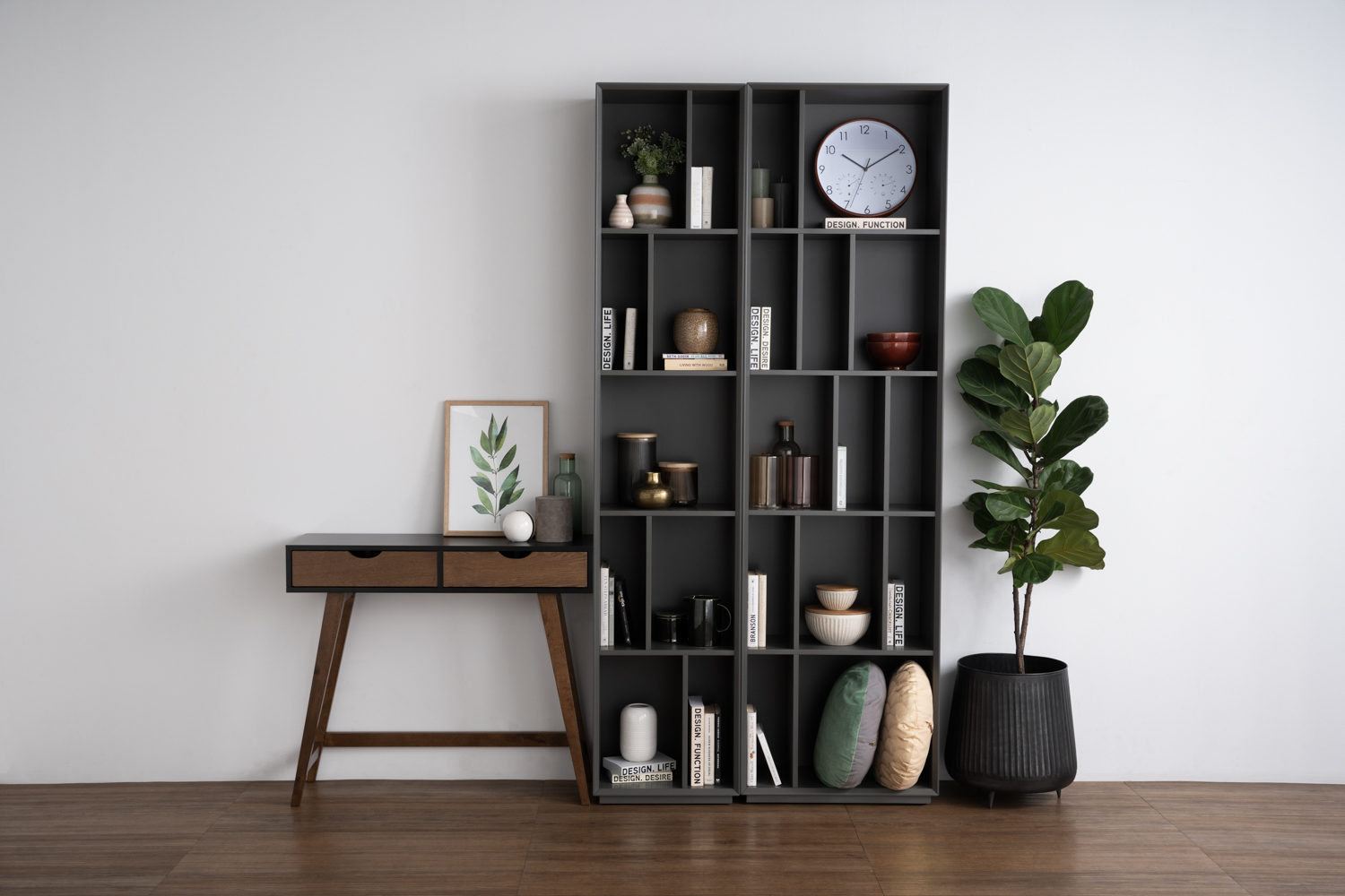 Arsenio console table in Black colour top and Cocoa colour drawer, Cocoa colour leg