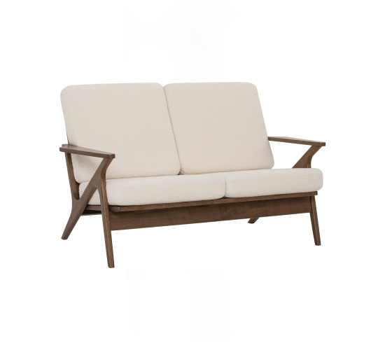 Aston 2 seater sofa in Cocoa colour frame, Walnut veneer handle with Pearl White colour Furry fabric cushion