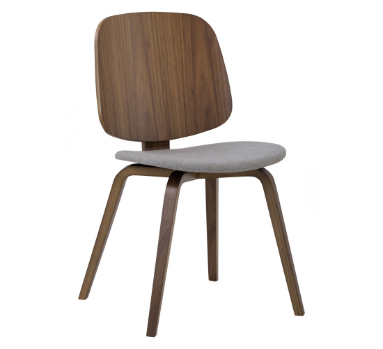 Avarie dining chair in Cocoa colour frame, Walnut veneer chair back with Light Grey colour Drill colour seat