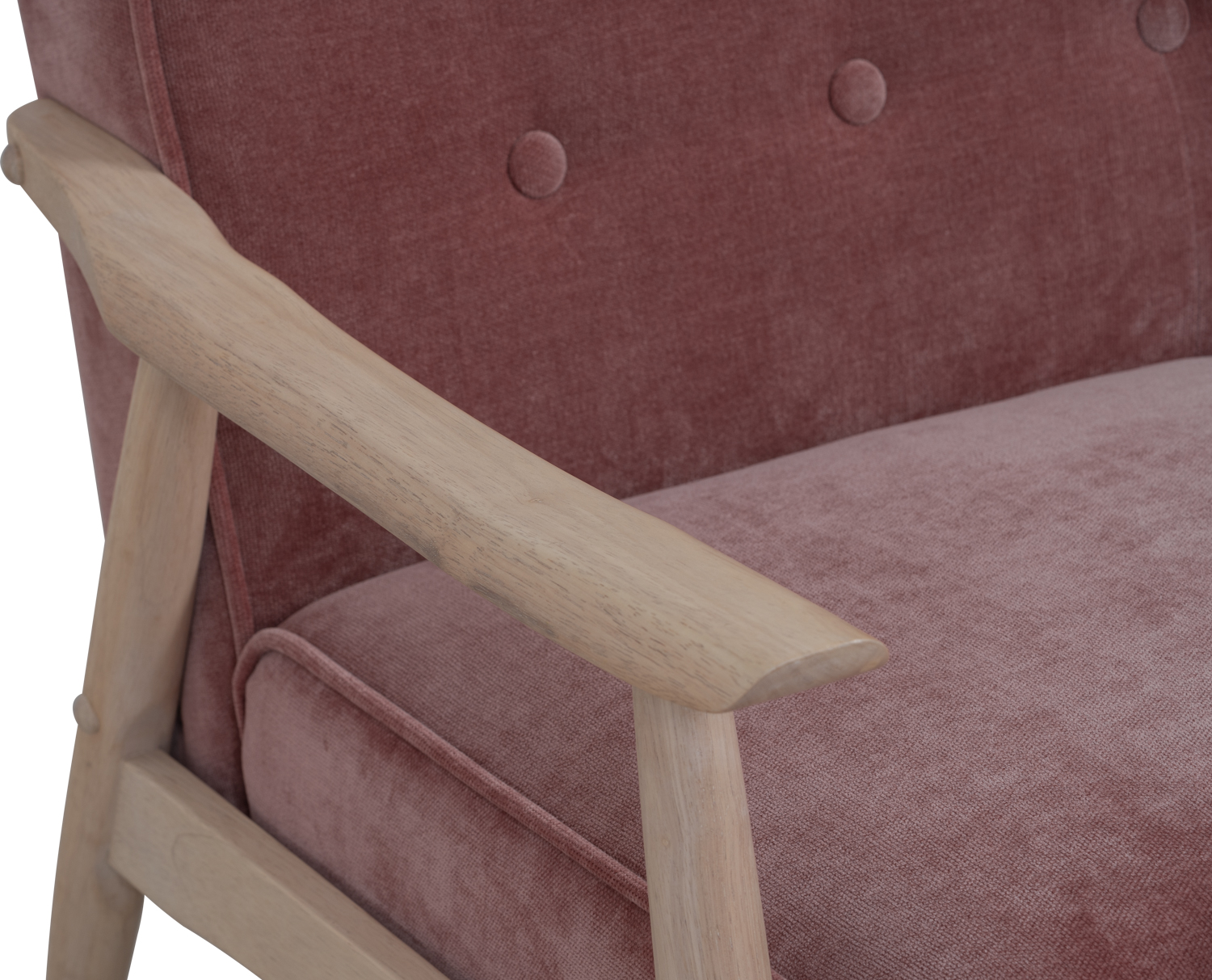 Baja 1 seater sofa with White Wash colour frame, Salmon colour Baxmal fabric