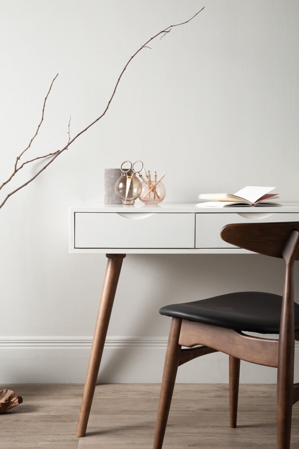 Blanco working desk in Cocoa colour leg, White Lacquered colour top