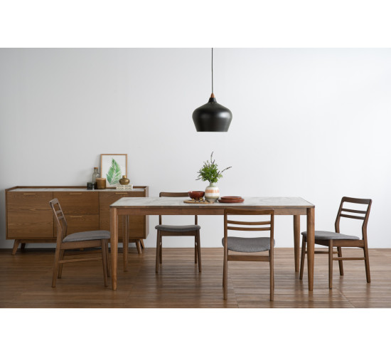 Bonnie dining chair with Cocoa colour leg, Oyster Bay colour Chevron fabric