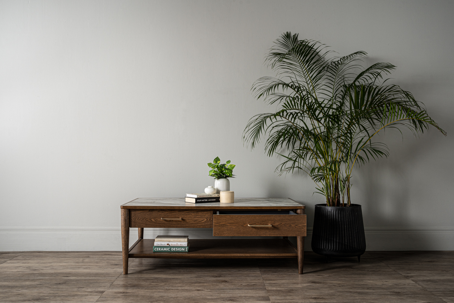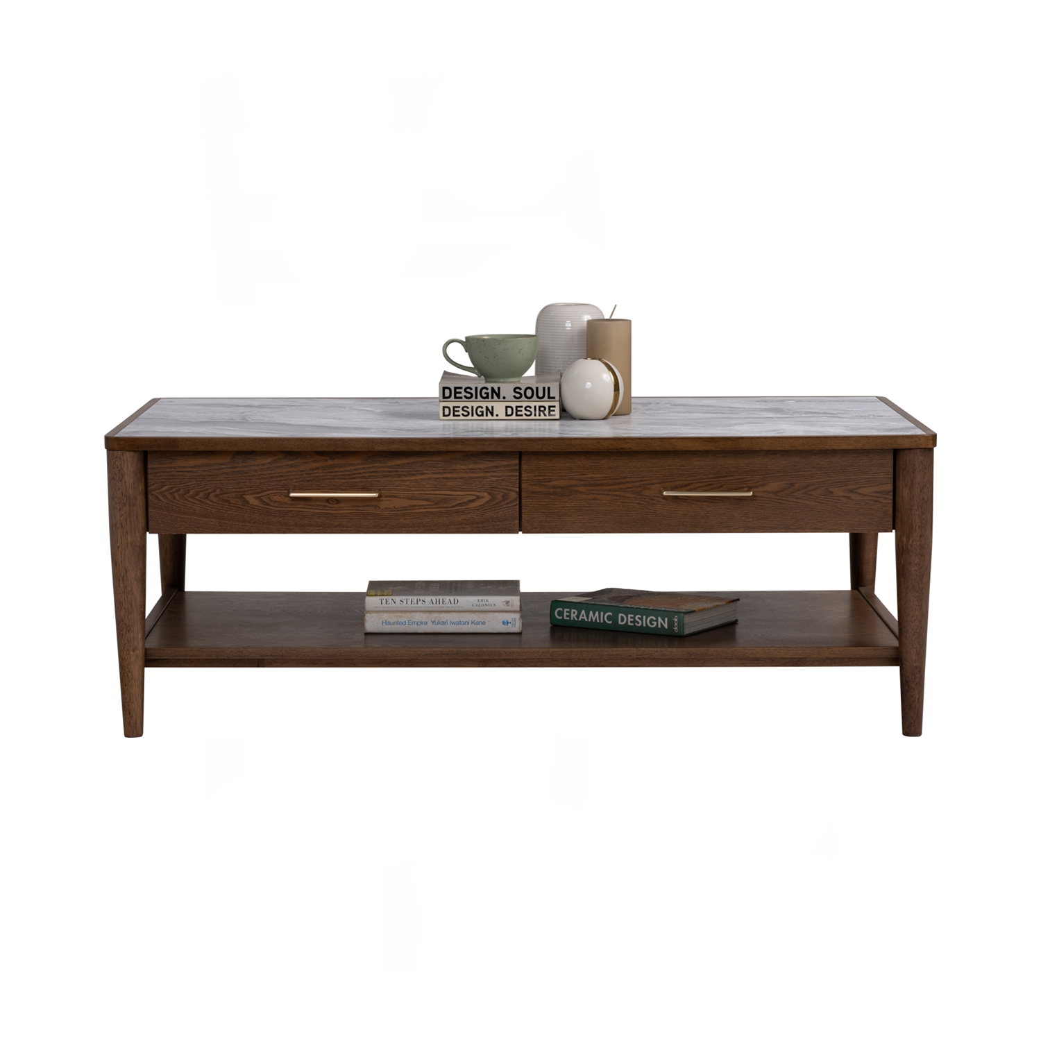 Breda coffee table in White Marble melamine top, Cocoa colour leg