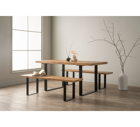 Brinhill 900×1600 Dining Table in Matt Black Epoxy colour metal leg, Light Tennessee Walnut top