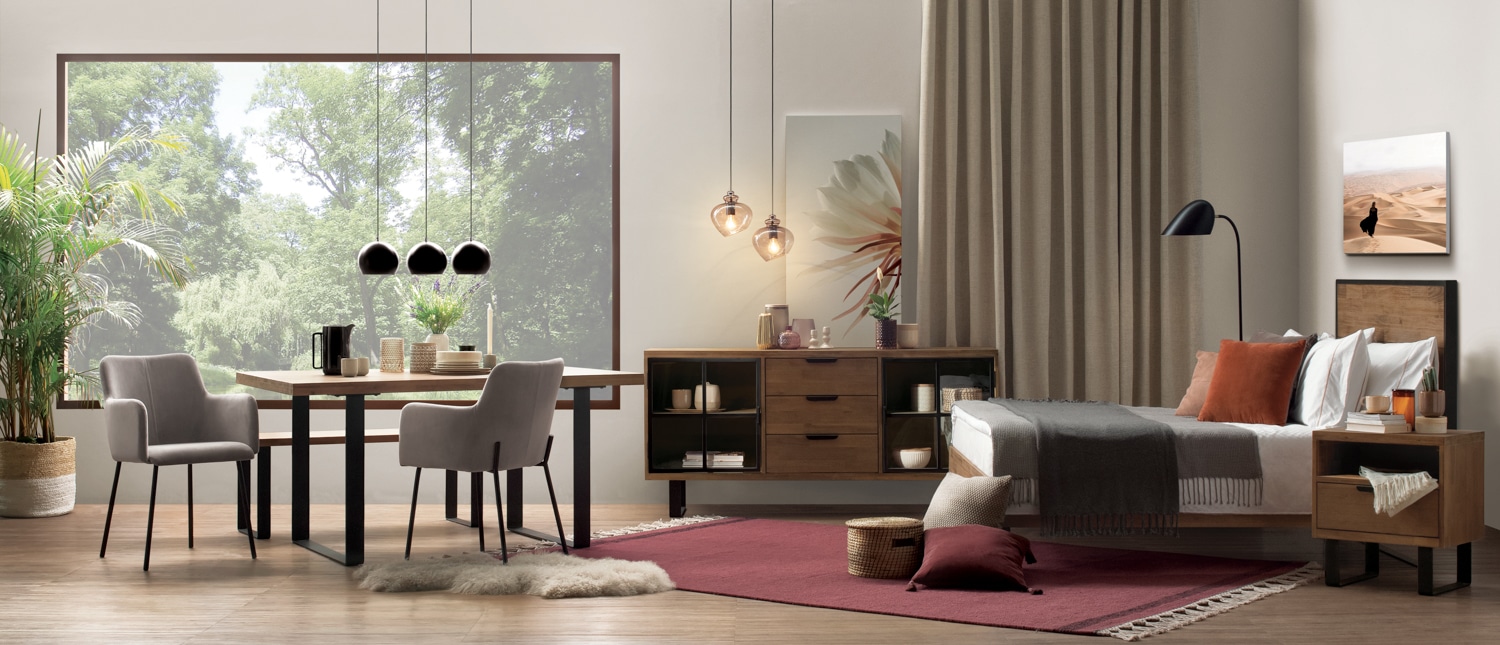 Brinhill Bedside Table with 1 drawer in Matt Black Epoxy colour metal leg, Light Tennessee Walnut body