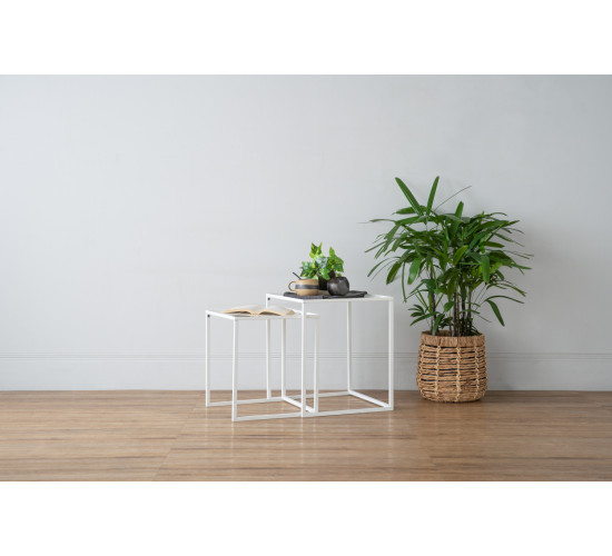 Cariad nest of 2 coffee table set in Matt White Epoxy