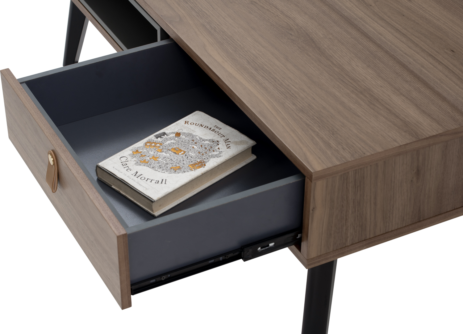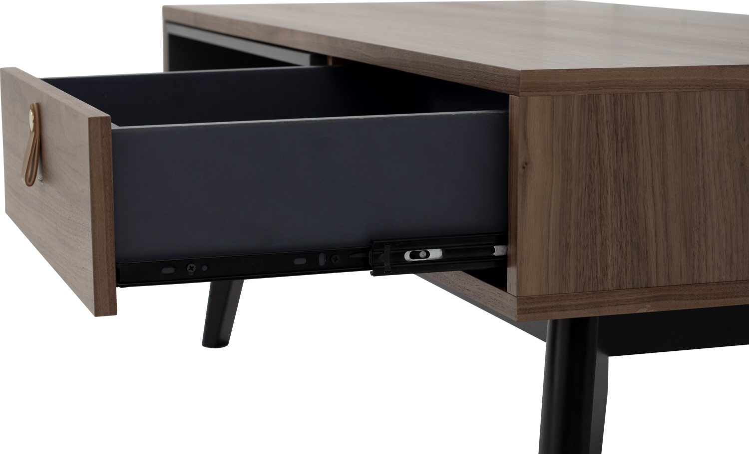 Castor Coffee Table in Walnut veneer top, Gunmetal Grey colour drawer with Black colour leg