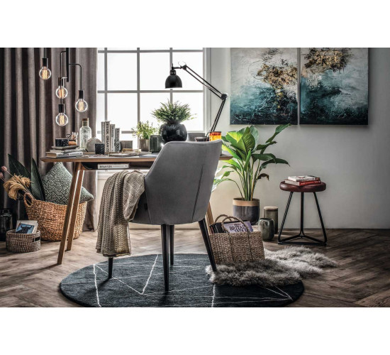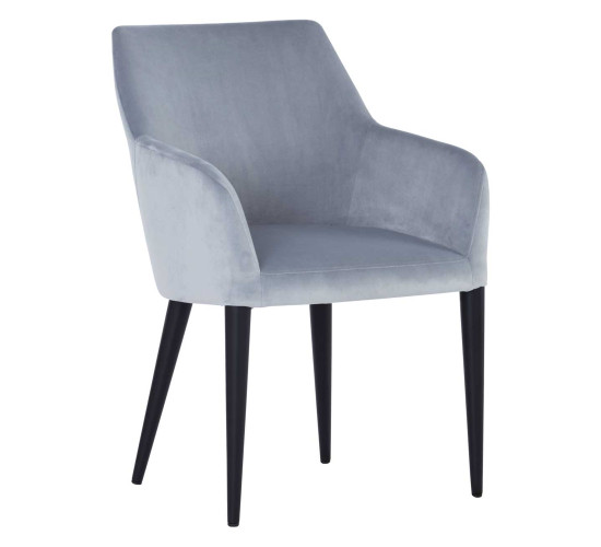 Cawny Dining Chair with Black colour leg, Pale Silver colour Saxony fabric