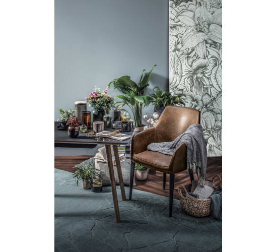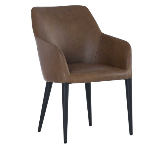 Cawny Dining Chair with Black colour leg, Brown colour Aniline Leather