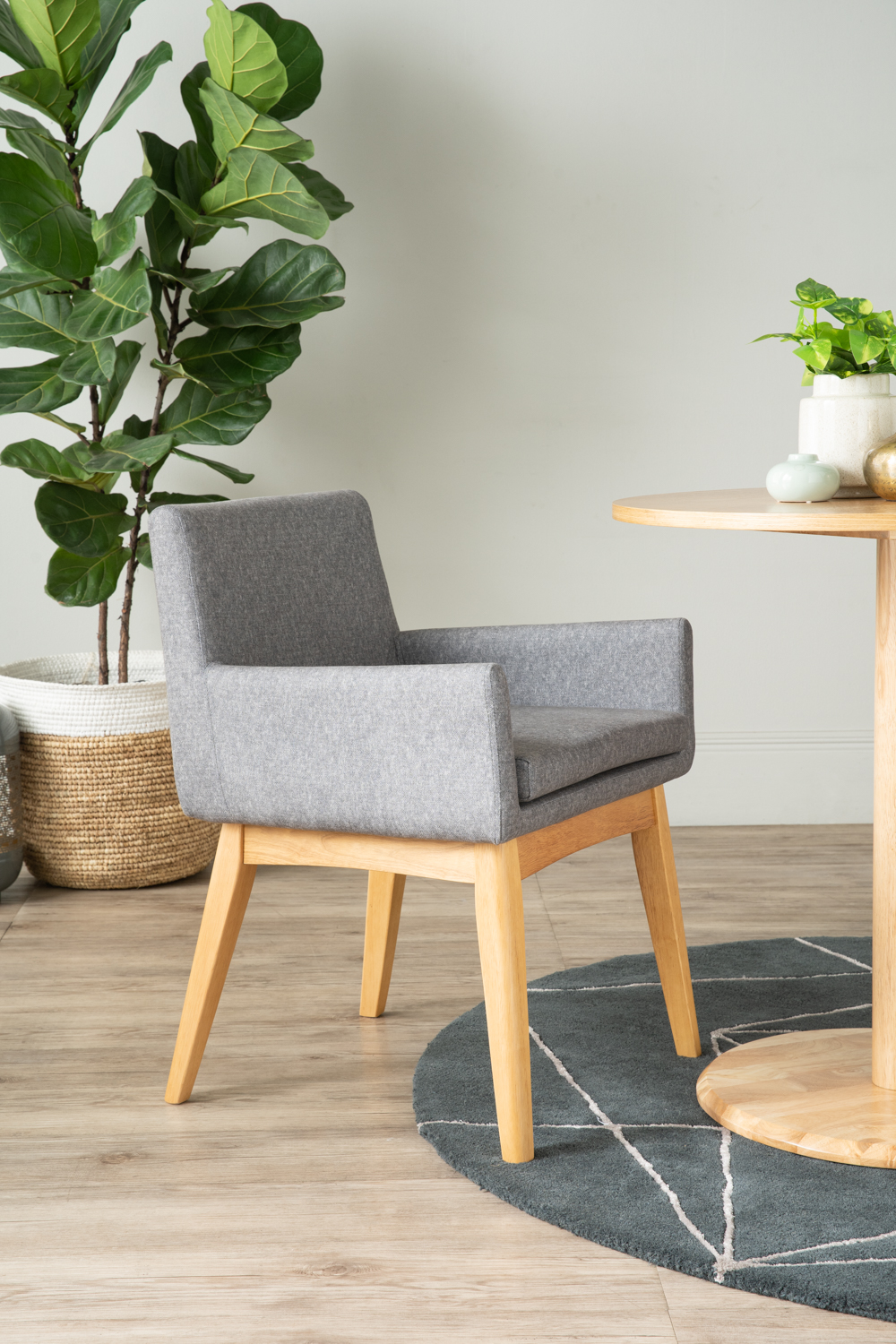 Chanel arm chair in Natural colour leg, Oyster Bay colour Chevron fabric frame