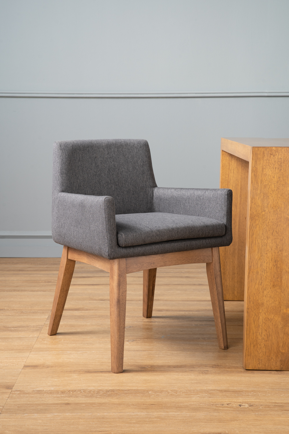 Chanel arm chair in Cocoa colour leg, Seal colour Dimity fabric frame