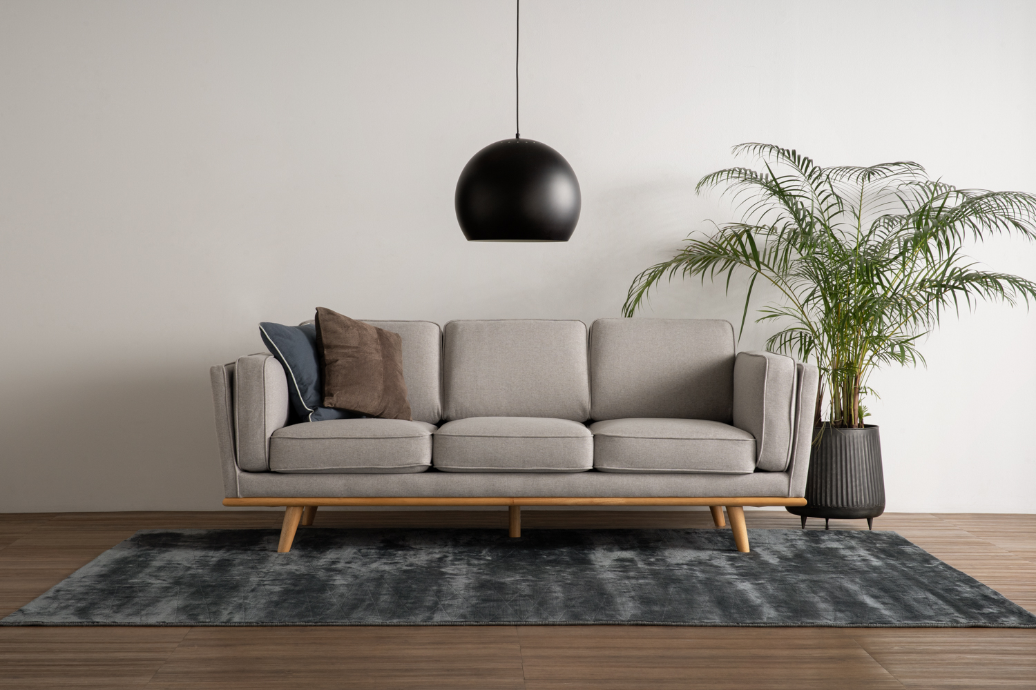 Civic 3 Seater Sofa in Natural colour leg, Light Grey colour Challis fabric