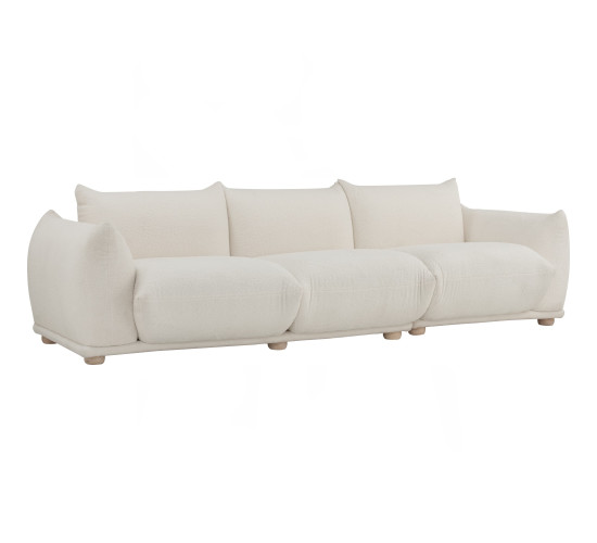 Clio 3 seater sofa with White wash leg, Cream White colour Teddy fabric