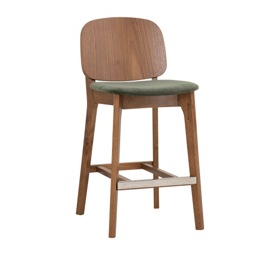 Cora counter chair in Cocoa colour frame, Walnut veneer back and Deep Green colour Danny A fabric seat