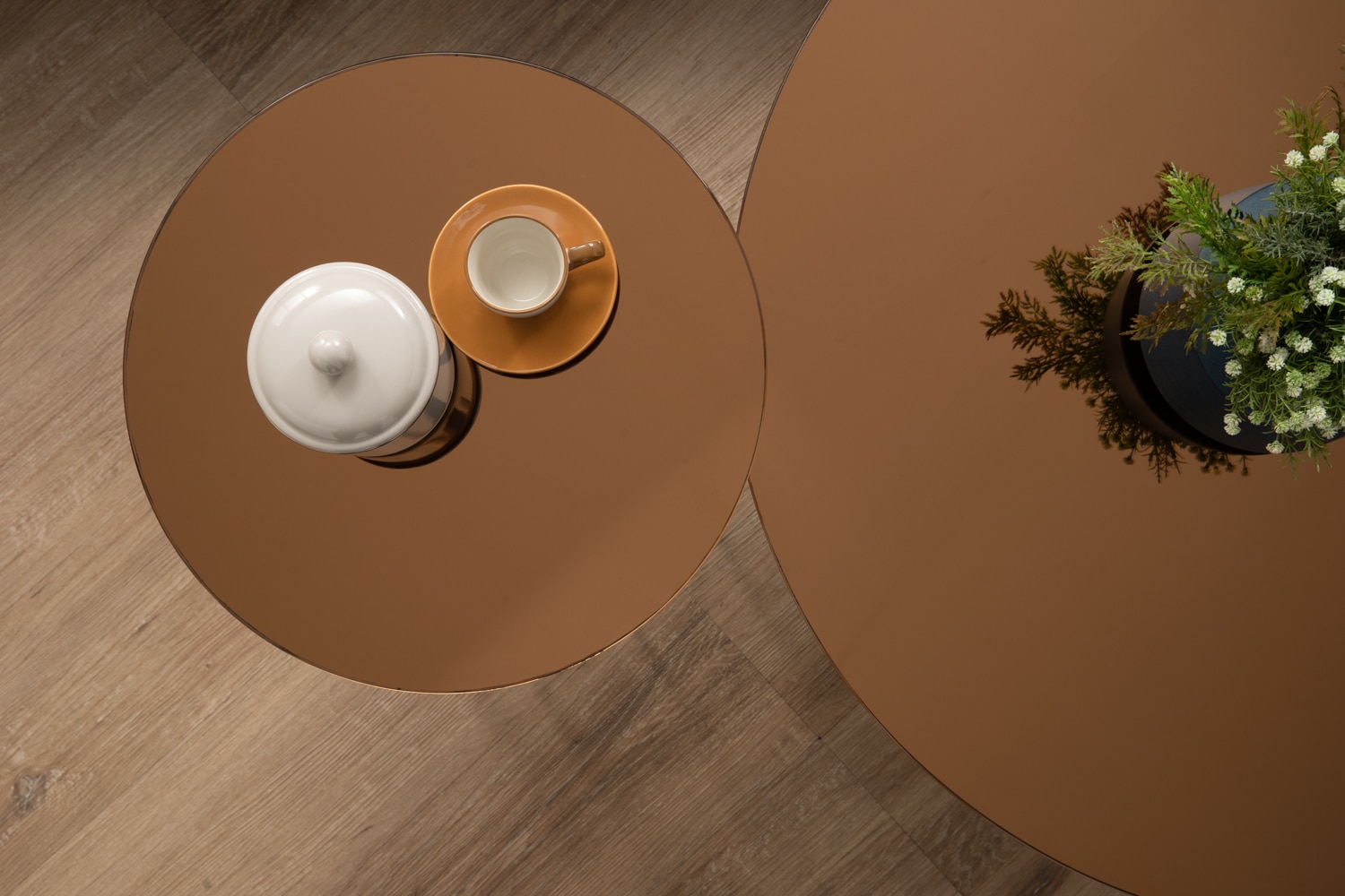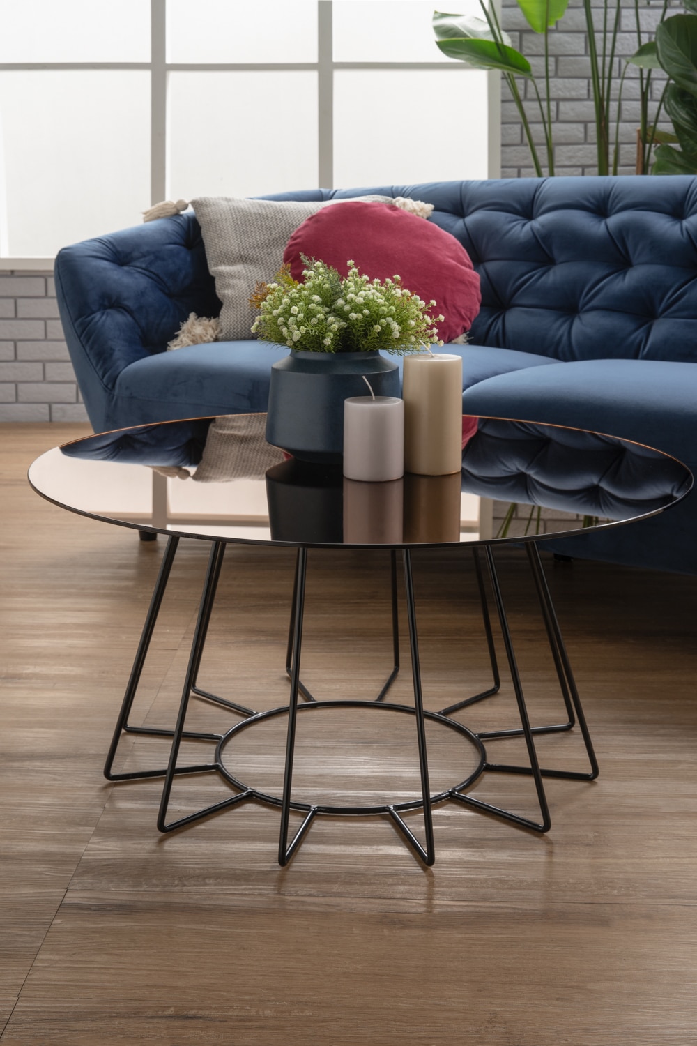 Cyrus Lamp Table in mirror glass top with Matt Black Epoxy colour leg