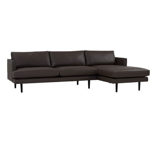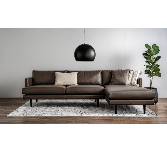 Dexter 3 seater L shape sofa with Black colour leg, Brown colour Aniline Leather