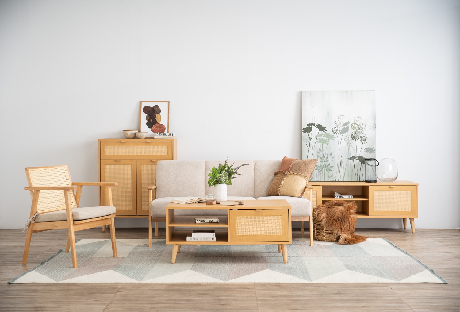 Dudley multi function cabinet on Natural colour leg, Oak colour body