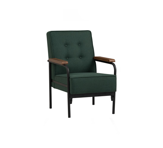 Dzire 1 seater sofa with Matt Black Epoxy colour leg, Cocoa colour handle and Kale colour Doublet fabric