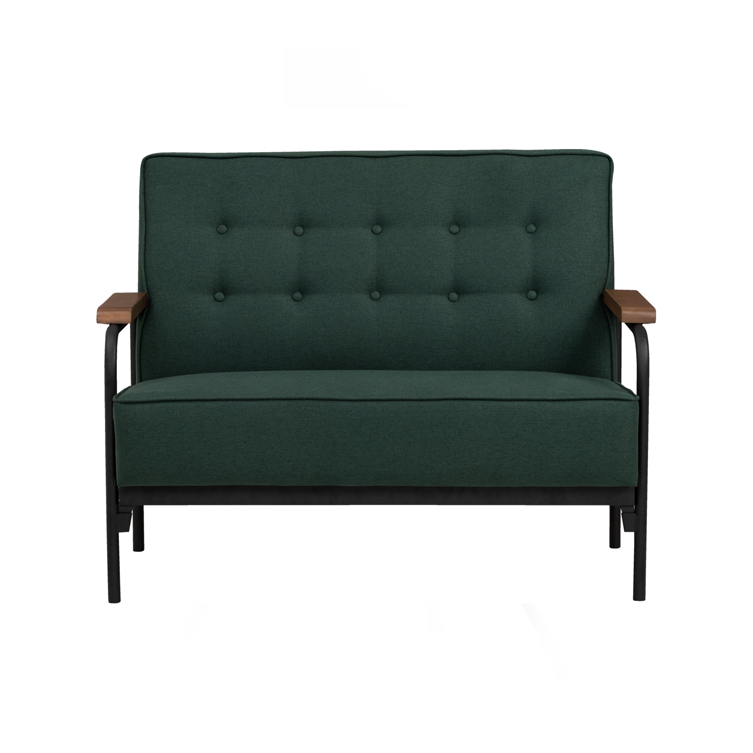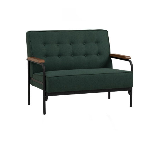 Dzire 2 seater sofa with Matt Black Epoxy colour leg, Cocoa colour handle and Kale colour Doublet fabric