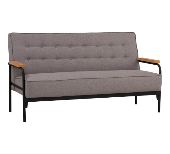 Dzire 3 seater sofa with Matt Black Epoxy colour leg, Natural colour handle and Grey colour Doublet fabric