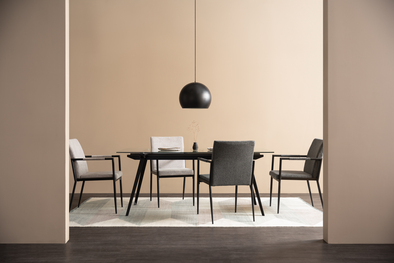 Ferma dining chair with Matt Black Epoxy colour leg, Anthracite colour Belfast fabric seat and back