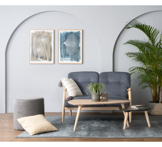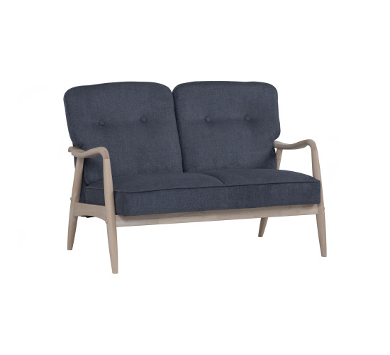 Figaro 2 seater sofa with White Wash colour frame, Dim Blue colour Moleen fabric
