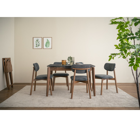 Folto 700×1200+300 extension table in Cocoa colour leg, Black Marble colour laminated top