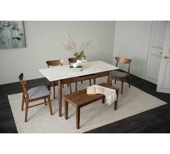 Folto 700×1200+300 extension table in Cocoa colour leg, White Mable colour laminated top