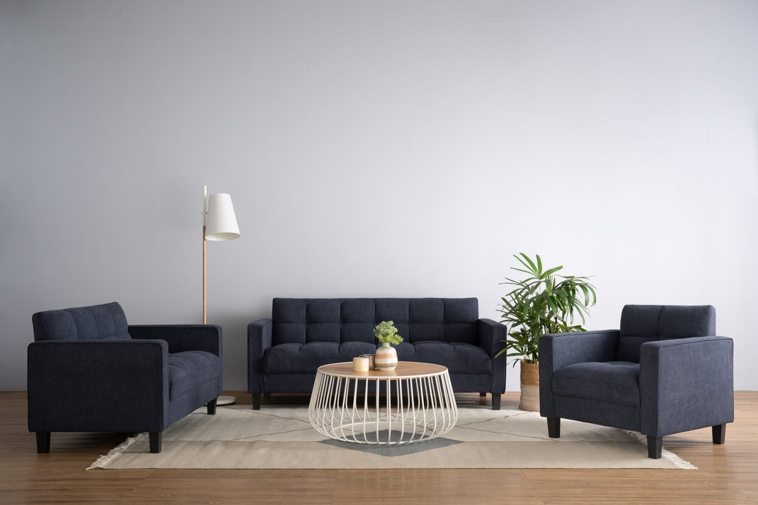 Gabbia round coffee table in Natural colour top, Matt White Epoxy leg