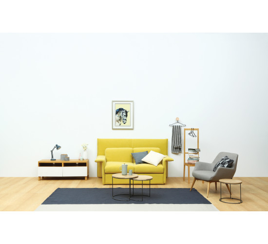 Gordy 1.18M TV cabinet in Oak laminate body with Light Grey laminate door with Natural colour leg