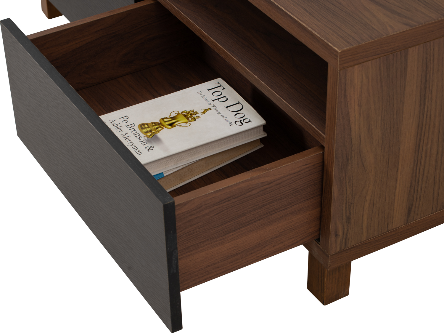 Gordy 1.18M TV cabinet in Walnut laminate body with Black laminate door with Cocoa colour leg