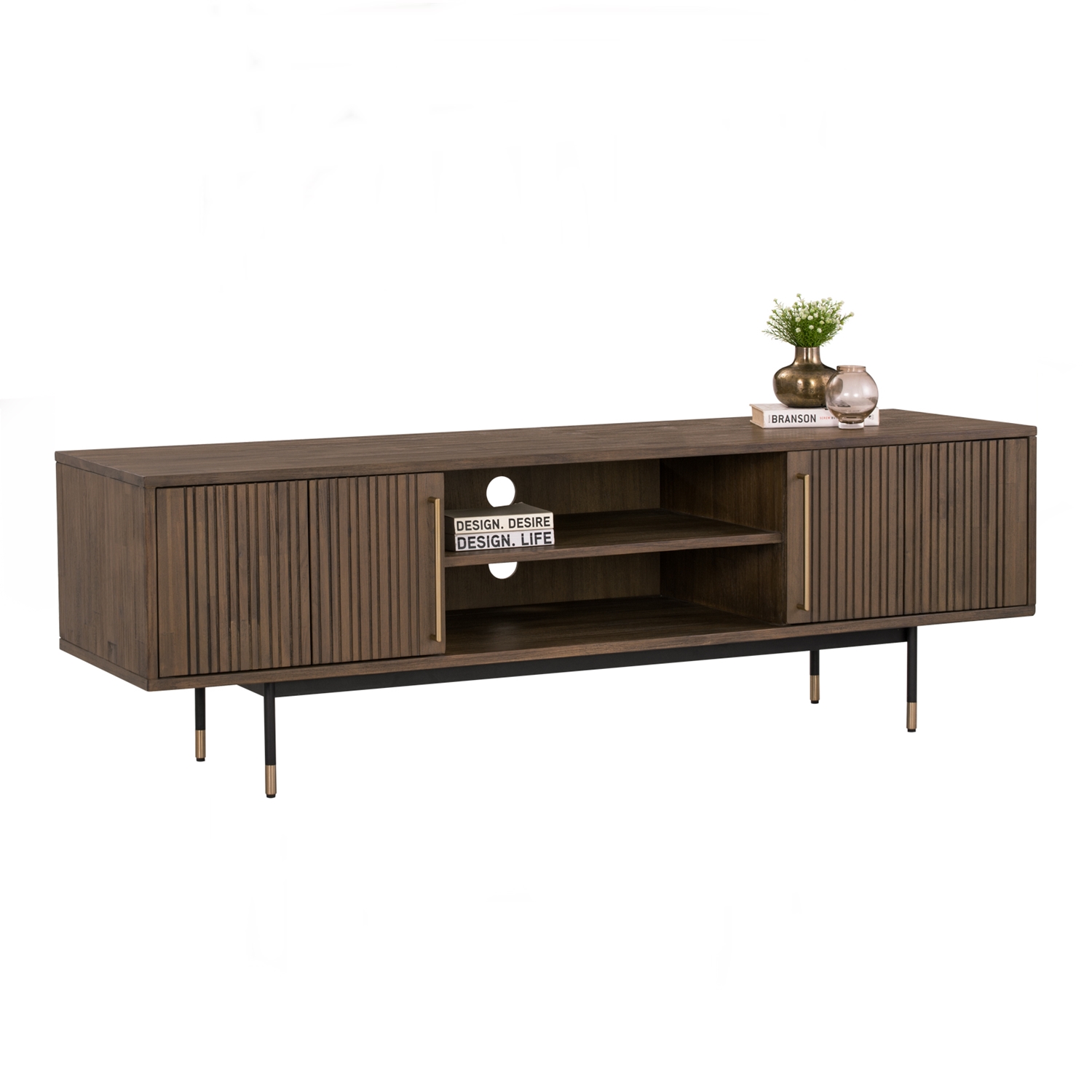 Hamilton 1.7M TV Cabinet with Sand Black colour leg, Toffee colour body