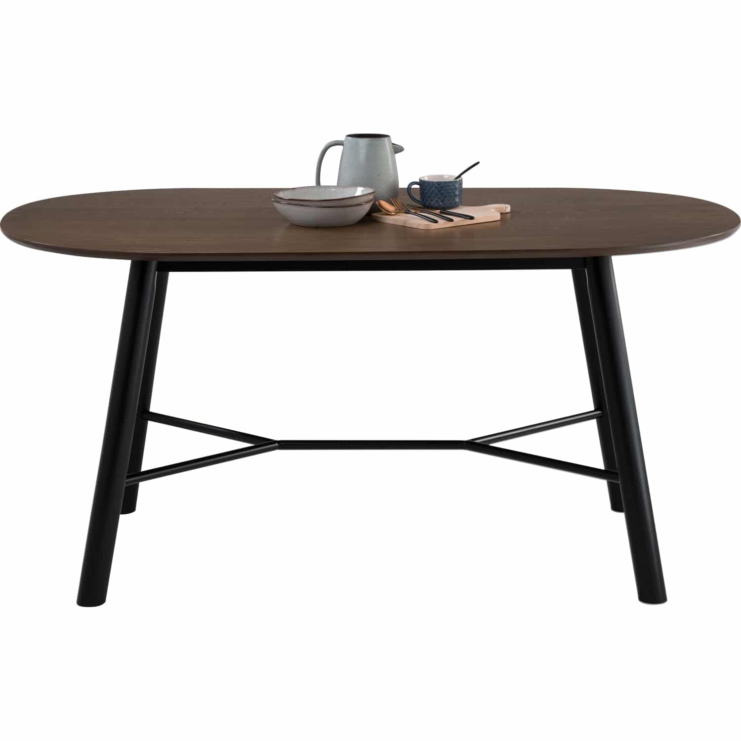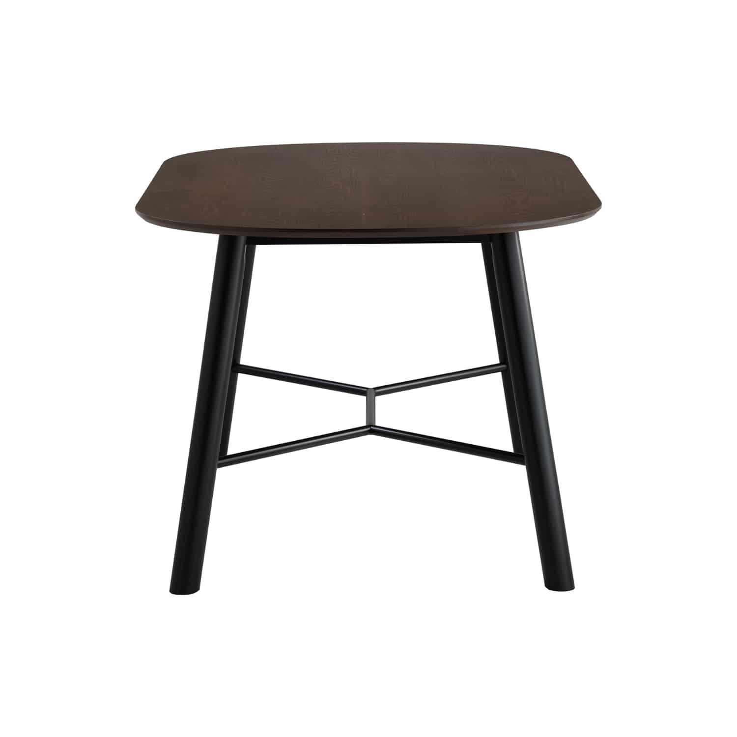 Harold 950×1600 dining table in Black colour leg and Matt Black Epoxy metal cross bar, Cocoa colour table top