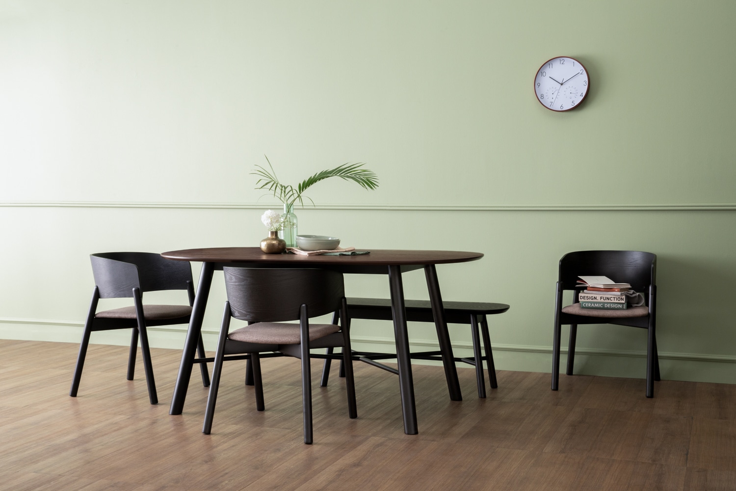 TABLE LEG: MALAYSIAN OAK LEG SUPPORT BAR: METAL TABLE TOP: MDF+ASH VENEER
