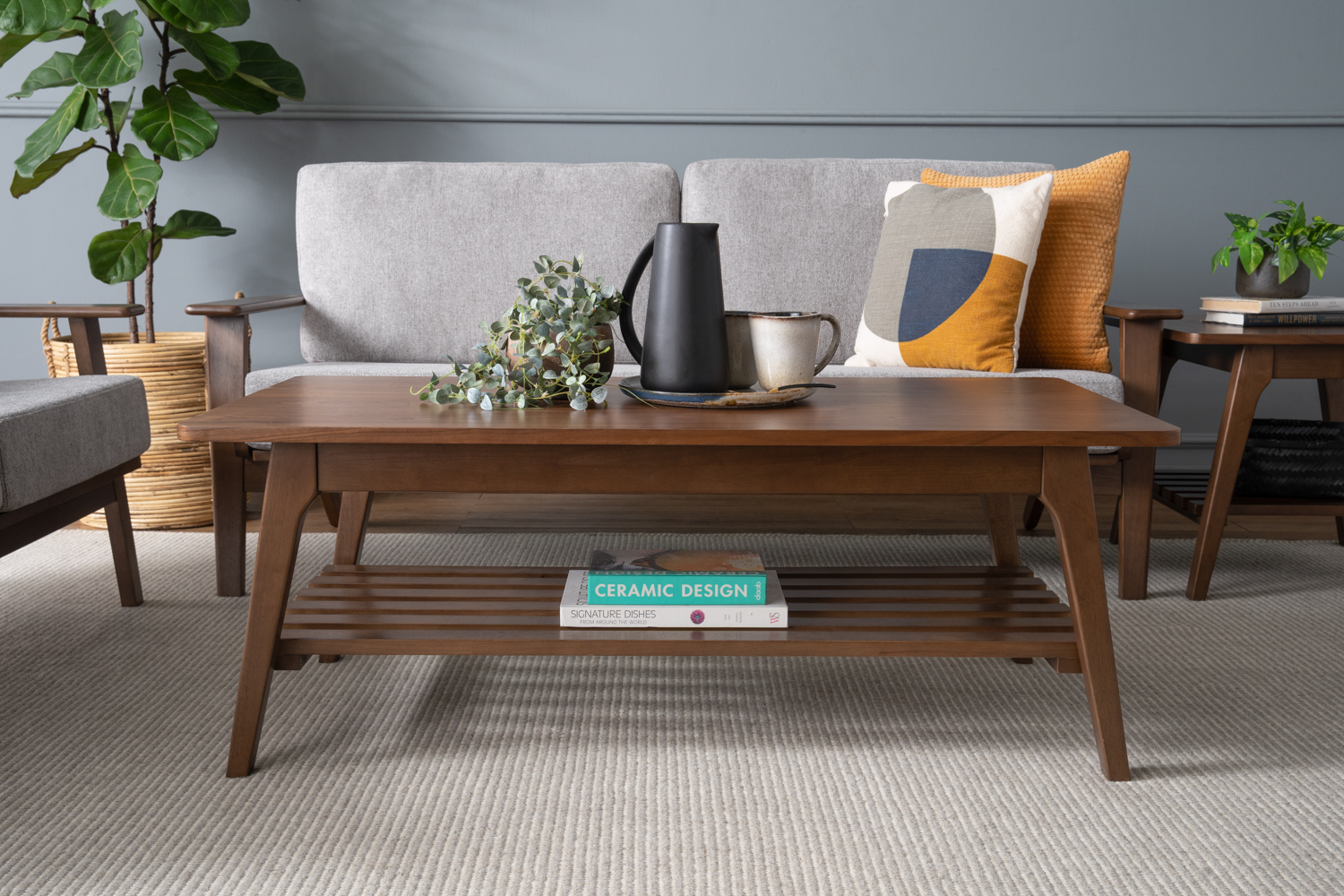 Harper coffee table in Walnut veneer top, Cocoa colour leg