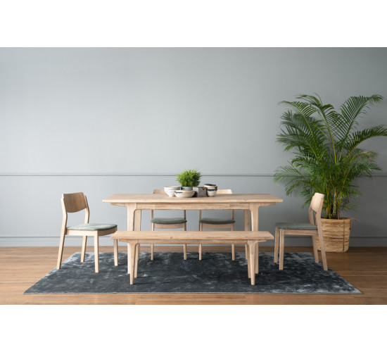 Haru Dining Chair with Navara Ash colour leg, Jade colour Moleen fabric
