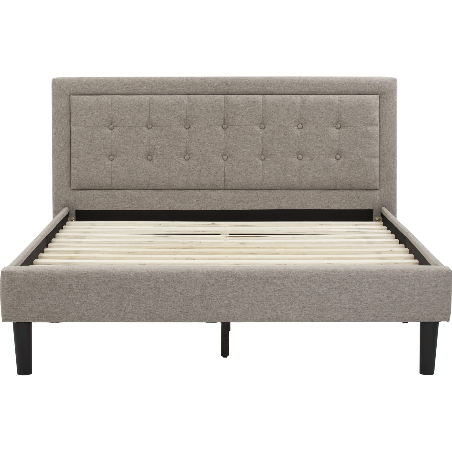 Hayden Queen bed on Black colour leg, Harmonic Tan colour Dimity fabric (Fit mattress: 1520mm x 2030mm)