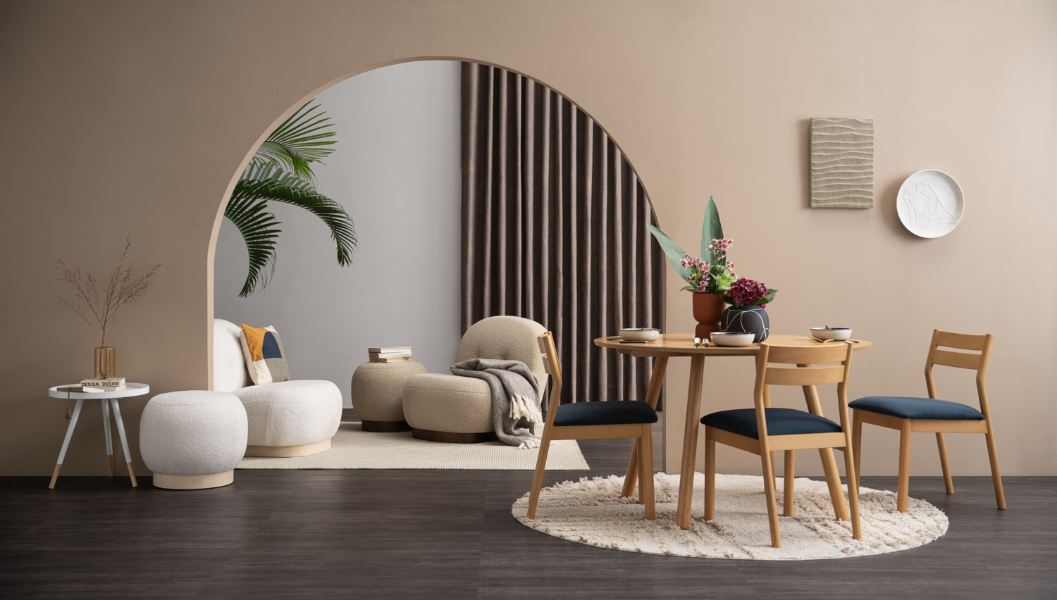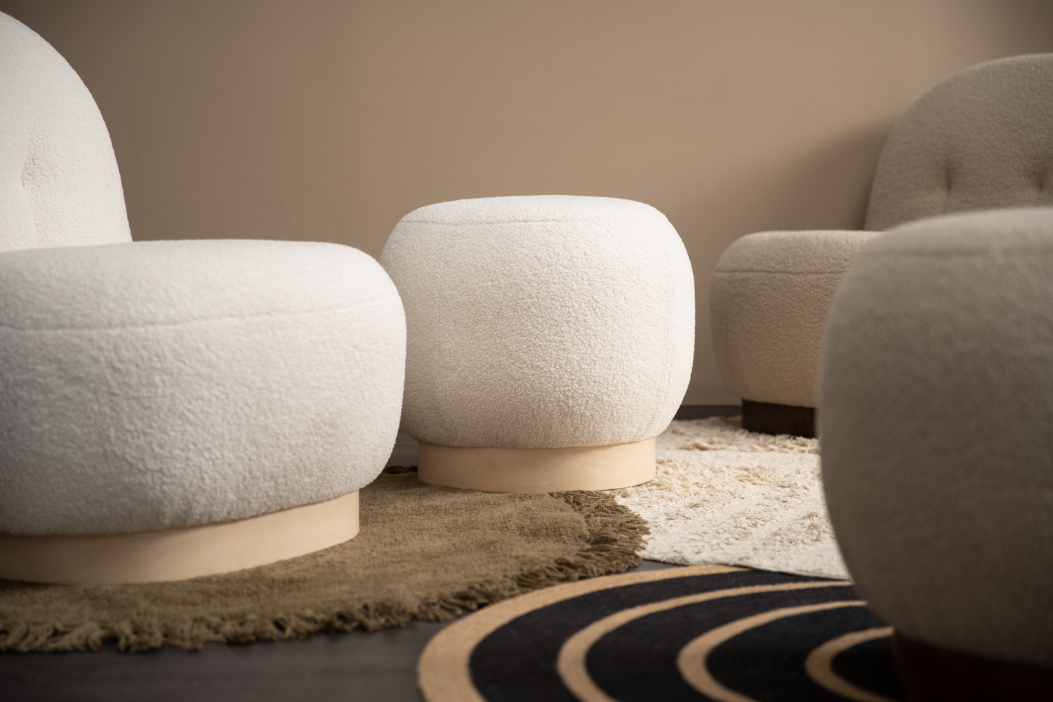 Helia lounge chair with White Wash colour leg, Cream White colour Teddy fabric