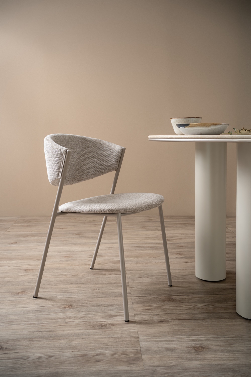 Hiri Dia 1200 round dining table in Beige colour leg, Beige Marble colour Malamine top