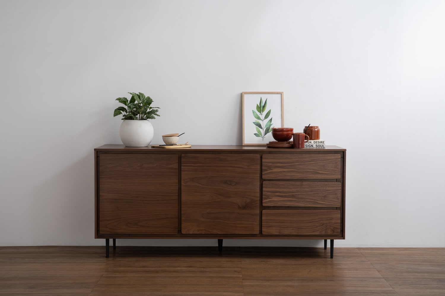 Hutto 1.8M Sideboard Cabinet in Walnut veneer body with Matt Black Epoxy leg