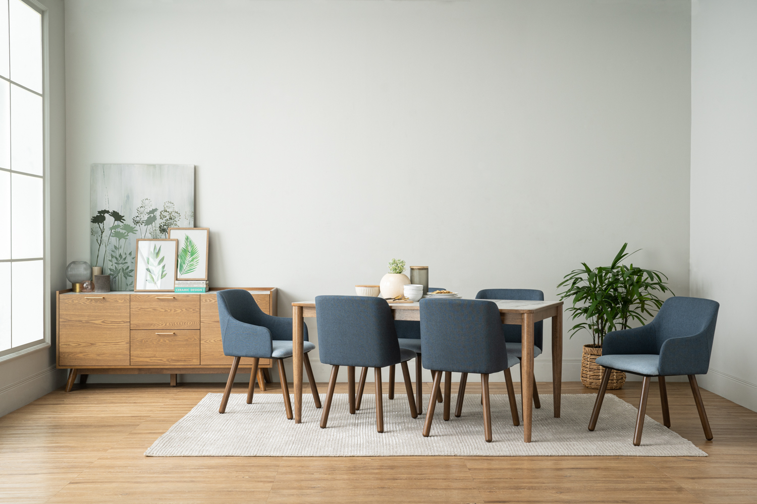 Jollin dining chair with Cocoa colour leg, Navy colour back and Light Blue colour seat Double fabric