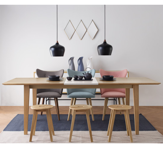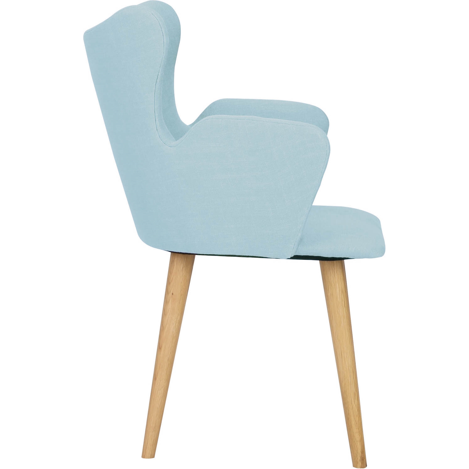 Kachina dining chair with Oak leg, Aquamarine colour Crepon fabric