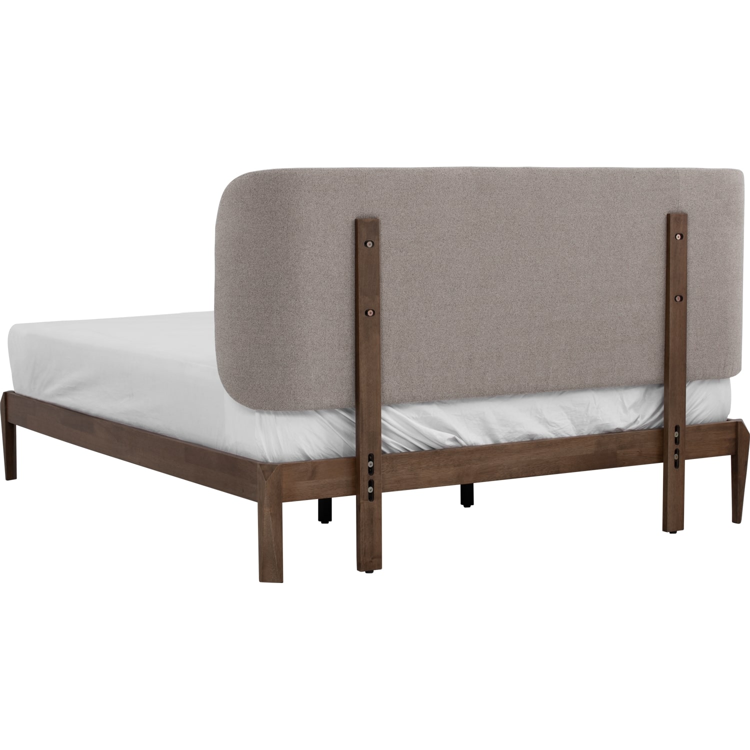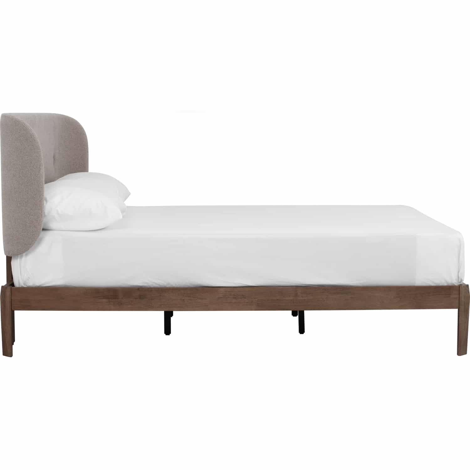 Kaiji Queen Bed with Cocoa colour leg, Beige colour Bruta fabric headboard and Dark Grey colour Bruta fabric buttons (Fit mattress : 1520mm x 1930mm-Bed panel)