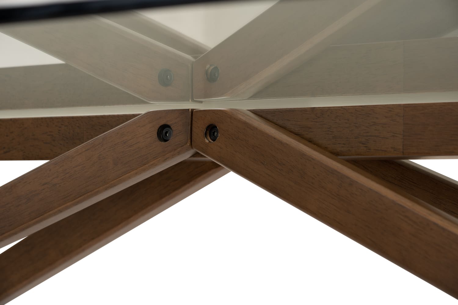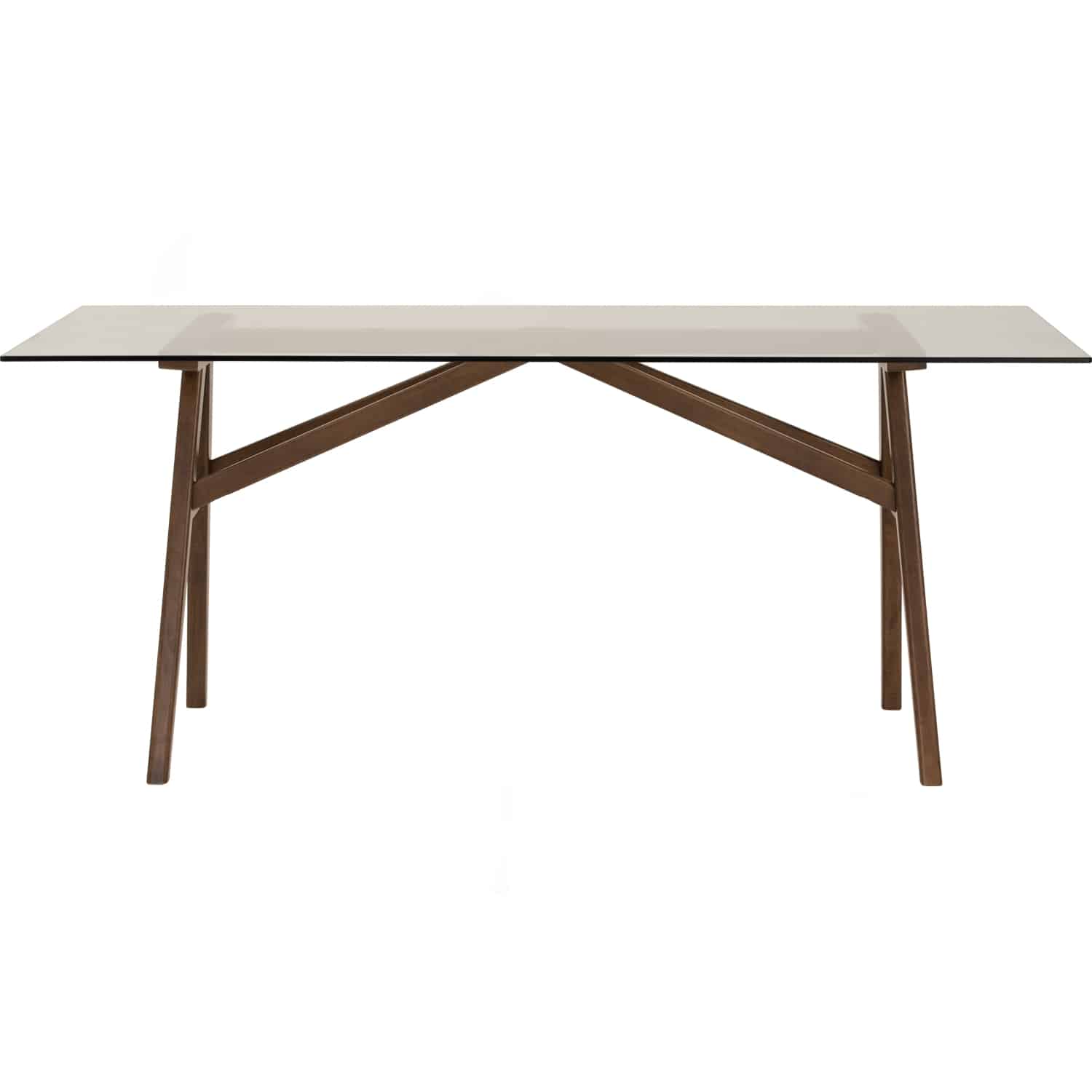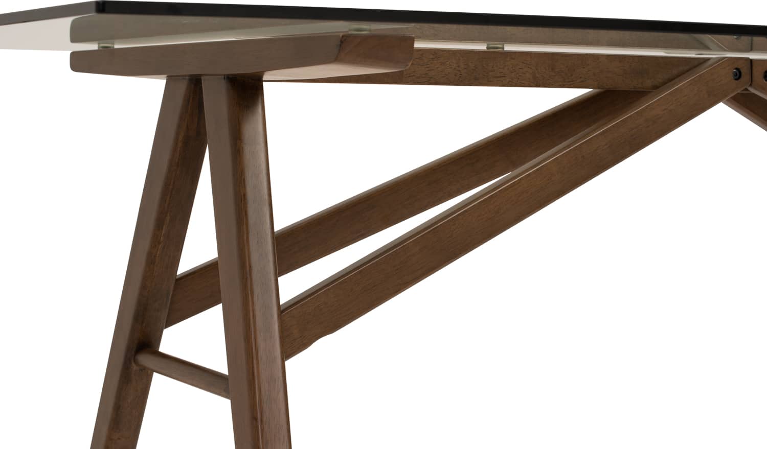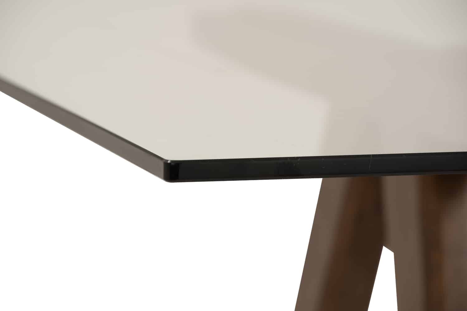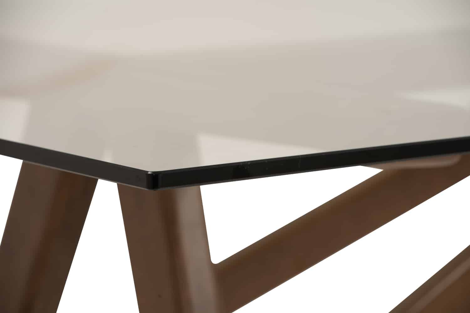 Koen 900×1800 dining table in Cocoa colour leg, Clear tempered glass top