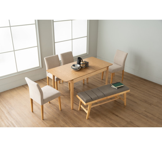 Ladee dining chair in Natural colour leg, Beige colour Jersey fabric