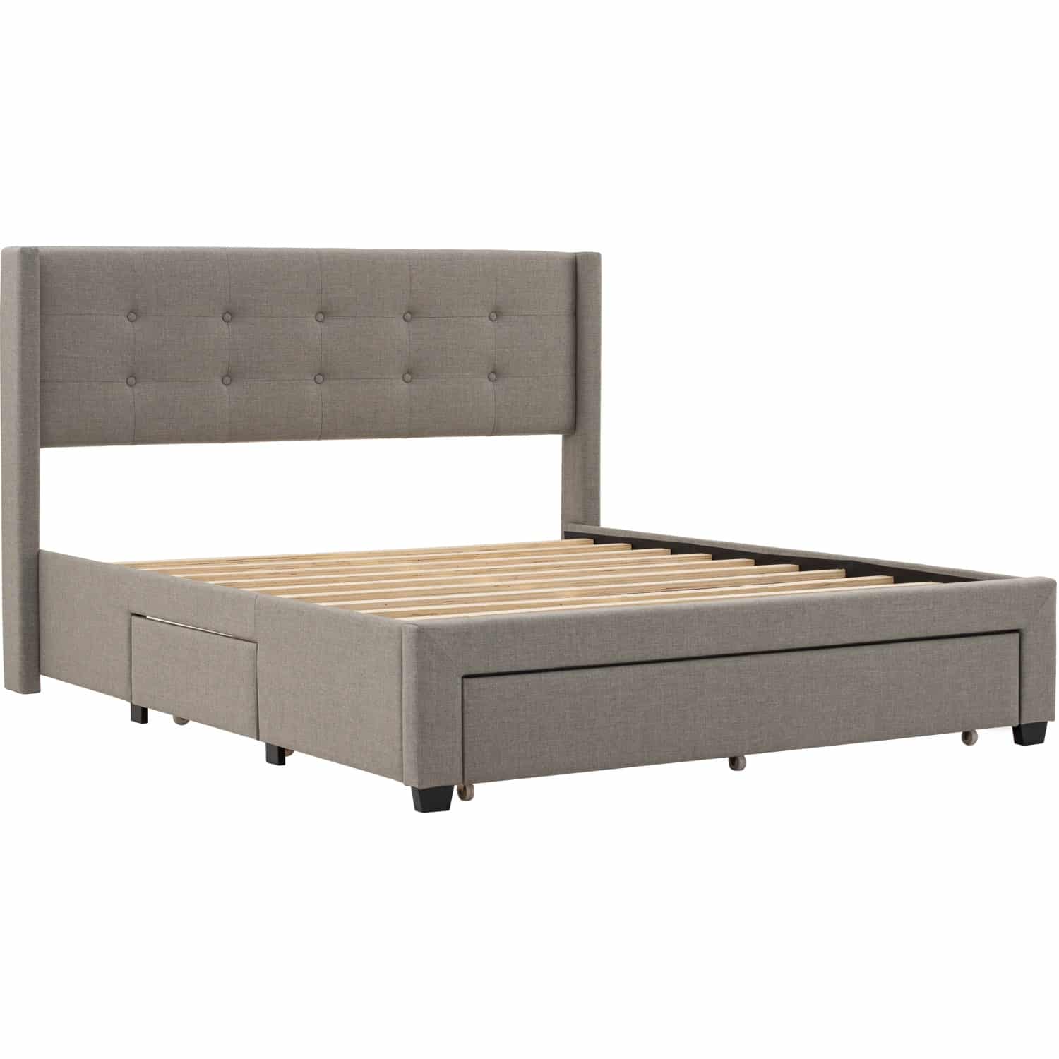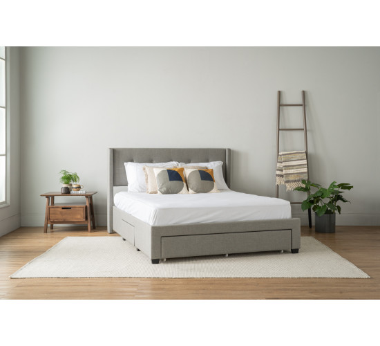 Lavish Queen bed on Matt Black Epoxy leg, Grey colour Savana fabric (Fit mattress: 1540mm x 1930mm)