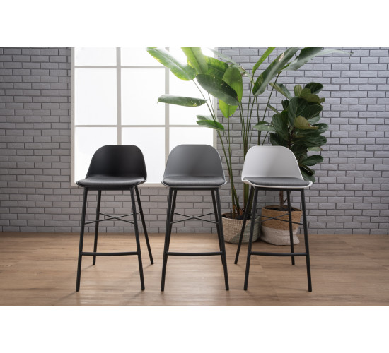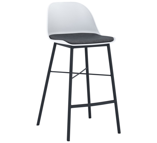 Laxmi counter chair in Matt Black Epoxy leg, White colour seat and Battleship Grey colour cushion