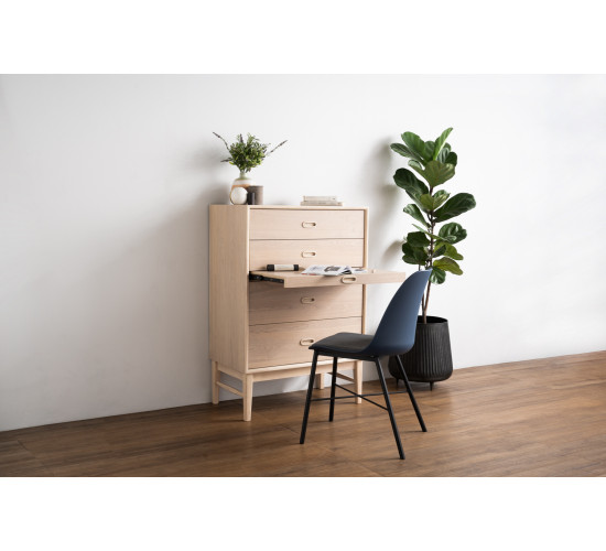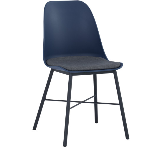 Laxmi dining chair with Matt Black Epoxy leg, Midnight Blue colour seat and Battleship Grey colour cushion